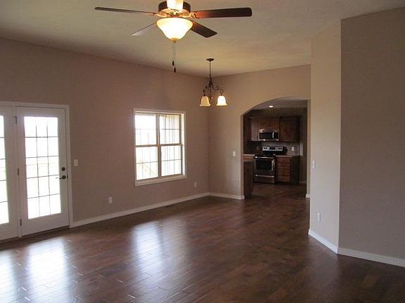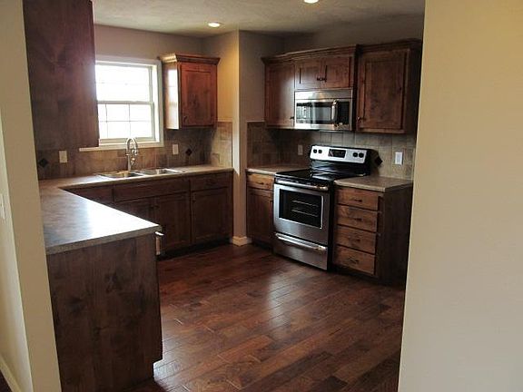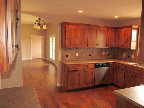 Just completed and ready to move in!!! Brand new brick home with stone accents, 4 Bedrooms, 2 Baths, 3 Car Garage!!! Gas Fireplace, Knotty Alder cabinets, Stainless steele appliances, Large pantry, Beautiful Wood flooring in kitchen, dining, living room and hallways. 10'ft ceilings, Large covered deck overlooking parklike setting! In-ground Sprinkler system. Neighborhood has swimming pool, basketball, club house, walking trails, play grounds etc. You will want to take a look at this one!