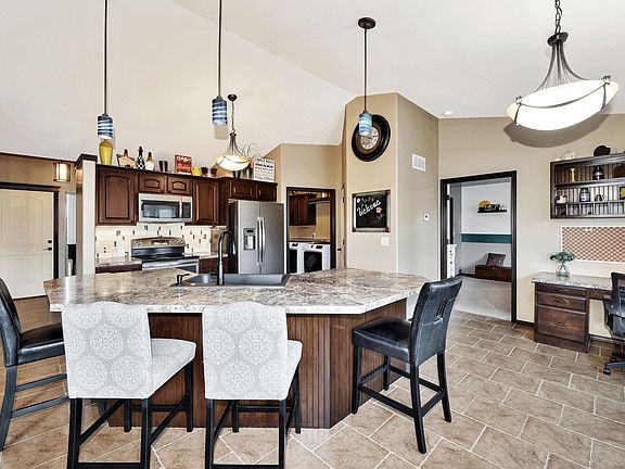 No More Showings. Seller has verbally accepted an offer. We have to wait for relocation to return the paperwork to make this pending.This stunning home offers a perfect blend of luxury and functionality, designed for both relaxation and entertainment. As you approach the residence, the exterior showcases a meticulously landscaped yard with a beautiful inground pool, inviting hot tub, and a pergola providing a serene setting for outdoor gatherings. The adjacent fire pit area complements the outdoor experience, creating a cozy atmosphere for evenings under the stars. Stepping inside, you'll immediately notice the spacious and open floor plan. The main floor boasts a generously sized kitchen featuring a central island, perfect for meal preparation and gathering with family and friends. The nearby large patio and deck offer additional areas for dining and outdoor entertaining. On the main floor, you'll find the master bedroom complete with an en suite bathroom, providing a private retreat. Two additional bedrooms on this level offer comfortable living space, along with the convenience of main floor laundry. The walk-out basement adds another dimension to the home, featuring a large family room for gatherings and entertainment. A custom-made wet bar enhances the basement's entertainment value, and a concrete ramp ensures accessibility for all. Two more bedrooms and a bathroom in the basement offer ample space for guests or extended family. The garage is meticulously organized, showcasing a spotless "man cave" enviroment with a painted floor, making maintenance a breeze. It includes the refrigerator, adding to the convenience and functionality of this well-designed space. The home is thoughtfully planned with "almost" zero threshold entries, enhancing accessibility and providing a seamless transition between indoor and outdoor spaces throughout the home, with only minimal 2-3 inch thresholds. The 3.0 doors add to the accessibility and overall elegant design of this exceptional home. The chair lift on stairs and the pool chair lift are negotiable. All backyard outdoor furniture remain except the wood bench in the pergula