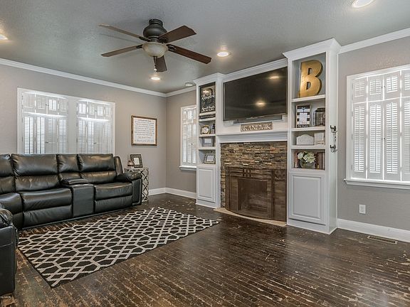 *Virtual Tour* Hang your hat in this charming Panhandle retreat. Pride in ownership shows from the moment you walk in the door. Almost 1/3 of an acre on a corner lot close to the city park. This move-in ready house includes updates throughout. Plantation shutters, stacked rock fireplace with custom built-ins, oversized A/C, tankless water heater, arched entryways, sprinkler system, and plenty of storage. Garage has electricity and a work room. BONUS: Stainless refrigerator, microwave, and front-load washer and dryer stay with the property! Per seller: Granite installed in bathroom and kitchen- February 2020; Cabinets refinished- April 2020; Backsplash installed- March 2020.