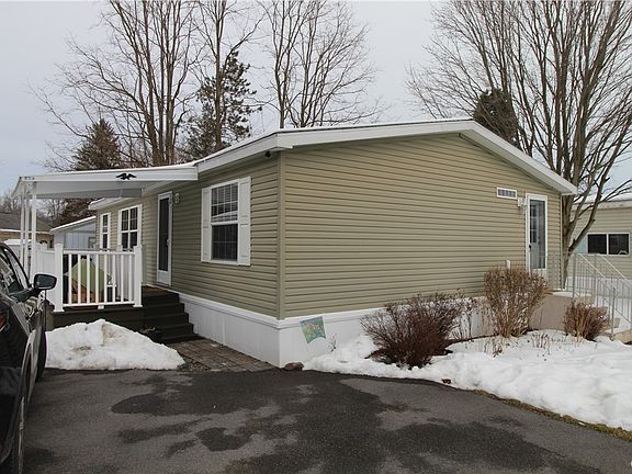 Welcome to this beautiful cute and cozy home. Located in Terrace Hill Estate Manufactured Home Community. This is a 2008 skyline 28x44 3 bedroom 2 bath with cathedral ceilings. Some new flooring and new paint. Very well maintained and in move in condition. There is a huge eat in kitchen and large living room open floor plan. There is a split floorplan for bedrooms and all appliances stay. The heat is gas furnace with central air conditioning. Lot rent is $445 which includes trash and water and sewer. All sales are subject to Park approval which includes a credit check. Application can be found at www.Gardenhomesmanagement.com The sale is not avilable to close until End of April and can be occupied May 1st.