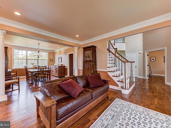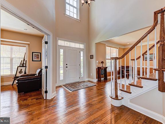 In a beautiful community of luxury homes, set on a premium lot backing to trees, is a home that combines quality construction, a thoughtful floorplan and warm decor in the Craftsman tradition. If you are looking for a lovely neighborhood home but want something elevated ~ something more welcoming than your average property ~ this home is a great choice. Entering the front door the two story foyer is flanked on the right by the den/office behind French doors. This is a multi-purpose room with a lovely picture window that would work well as a study, office or in a pinch maybe a guest room? On the other side of the foyer is the living room with the gorgeous Mullican four inch hardwood floors in Autumn Maple. These hardwood floors are found throughout most of the main floor. Deep crown molding and chair rail accent the living room and dining room separated by architectural columns. Step down into the large game room with vaulted ceiling and walls of windows topped by half-moon windows. The molding surrounding these windows is particularly handsome. In fact, great care has been taken throughout this home to pay attention to each small detail. Moving through to the center of the home is the really special kitchen. Significant upgrades were made to this room including Beautiful Century cherry cabinets in a timeless distressed chestnut finish. Beveled edge granite countertops, tumbled stone backsplash, stainless steel hood and 6 burner commercial style stove, large pantry with custom shelving, two wall ovens and under counter sink are the main features. The kitchen is open to the breakfast room with sliders to the rear yard as well as to the sunny family room with wonderful clerestory windows and a 20 foot vaulted ceiling. Here too you will find upgrades such as a multi-type recessed light package and in-ceiling speakers for the home stereo with five areas of sound. Completely wired; all you need are the amps to set it up! There is also a full wireless home package. Just off the entrance to the three car garage is the laundry room with cabinetry and utility sink. The powder room completes this floor. There are two staircases to the second floor; a gracefully curved main staircase in the foyer and a back staircase in the family room both with oak clading. The rear staircase leads first to the master bedroom behind double doors. Timeless luxury means plush carpeting, calm neutral decor, tray ceiling, unobtrusive ceiling fan, large sitting area and a huge 16x12 walk in closet. The master bath is also classic with beautiful t