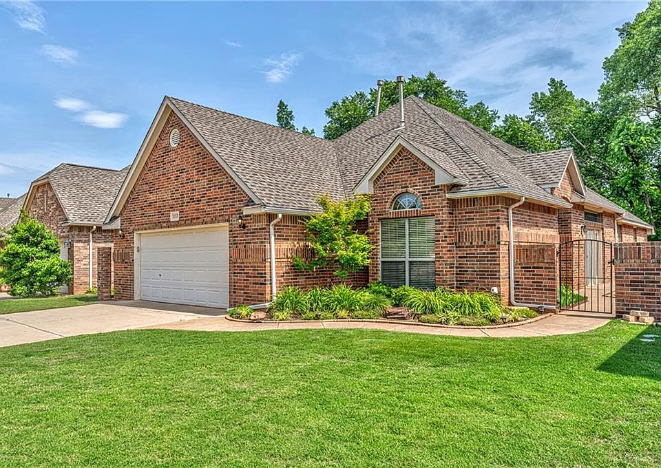 Enjoy this one-level beauty located in the coveted River Chase neighborhood just south of OU Campus. Delightful home features a spacious living room with double-sided fireplace, built-ins, & wood floors. French doors lead to the study with built-in desks & bookcases. The living, dining, & kitchen flow well for any kind of entertaining. The updated island kitchen is spacious with plentiful cabinet storage, granite countertops, newer appliances. The primary bedroom features a fireplace, an updated spacious bath with double vanities, shower, jetted tub, & a fabulous walk-in closet. The second bedroom is nicely sized with wood floors & ceiling fan. Secondary bath offers beautiful granite, skylight, & tub shower combo. This home offers an open side patio as well as a shaded back yard. A 10’ privacy fence was installed for additional privacy. ***Annual HOA fees provides year round mowing, fertilizing, weed control & seasonal leaf removal.*** HOA features a Clubhouse with a heated Pool & access to a path around some River Chase pond/gardens.