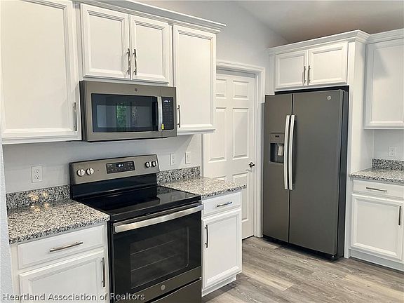 CONTRACT PENDING BUT SHOWINGS & BACK UP OFFERS STRONGLY ENCOURAGED. Beautiful, Brand New 3 bedroom - 2 bath home, centrally located in Sebring Country Estates! With modern, attractive neutral colors, cathedral ceilings, porcelain tile and waterproof vinyl plank flooring throughout. Bright, spacious great room opens to the focal point of the home, the beautiful granite kitchen with grand center island, breakfast bar, stainless steel farmhouse sink, bronze-like stainless steel appliances and window over sink overlooking the backyard. You'll love the large, indoor, air conditioned laundry room, conveniently accessible from the kitchen and garage. Spacious master bedroom with big walk-in closet, measures about 11' 9" x 4' 5", with shelves. Elegant ensuite bathroom has granite double sink vanity and tile walk-in shower. Beautiful guest bathroom with large granite vanity and tile shower with tub. Nice size backyard, screened porch, covered front porch, metal roof, irrigation and garage with extra wide driveway. Move in ready!