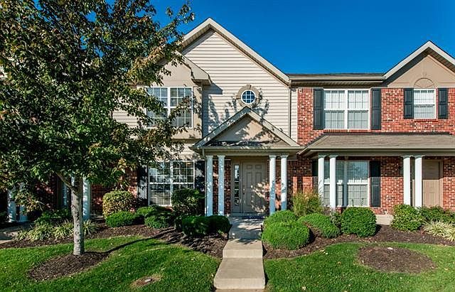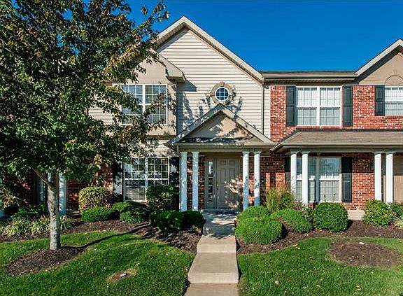 Townhouse with a View! Stop maintaining and start enjoying life in this lovely 3-bedroom townhouse. Enter the living room with huge front windows overlooking the tranquil lake and fountain. This cozy room flows into the breakfast room and kitchen with beautiful cabinetry, breakfast bar, pantry and a slider to the private patio. Handy main floor laundry and powder room. All new laminate flooring on the main level and fresh paint throughout. Upstairs are three generous bedrooms, two with walk-in closets, and a full bathroom. Rear-entry 1-car garage means neat and tidy curb appeal out front. HOA takes care of the yard and all outside maintenance and snow removal. Step out your front door and jump on the walking trail which circles the lake and the playground just down the street. Easy access to I-64 and I-364 and very near shopping, restaurants and movie theater. Wentzville Liberty School District. Don't rent! Invest wisely and live well! See this beauty today!