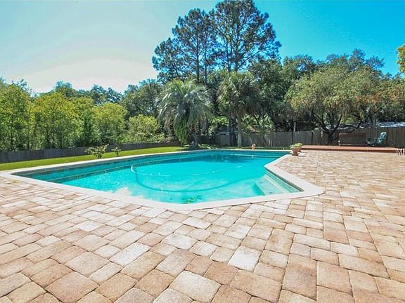 SHORT SALE. WOW!!! DON'T MISS AN OPPORTUNITY TO LIVE IN A QUAINT COMMUNITY WITH ALMOST A 1/2 ACRE OF LAND IN PEACEFUL CUL DE SAC LOCATION. DID I MENTION THE FANTASTIC PATIO AND POOL? This 4 bedroom, 2 bathroom home is perfect for the outdoor entertainer who enjoys nature at its best! The sprawling, fully fenced, backyard oasis is hard to come by. With the large screened in lanai, pavered patio, BBQ deck, and sparkling over sized pool, it can't be beat, while backing up to a private conservation. The inside floorplan consists of separate formal living and dining rooms, and well laid out kitchen that functions comfortably, overlooking the dinette and family room. The family room is centered around the wood burning fireplace feature with vaulting ceilings and french doors leading to the patio and pool. The split floorplan has the good sized secondary bedrooms positioned off of the family room. The light shines in from another set of french doors, with views of the pool from the master suite, complete with walk in closet, and remodeled spa like, master bathroom. As an added bonus, the outdoor area includes a workshop/hobby space with electric and a separate storage shed. This home is conveniently located near Shopping, Parks, Recreation, Golf, Boating, Tennis, Fishing, Schools, and Commuter Routes. See this one today!