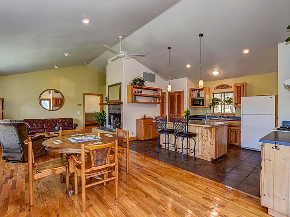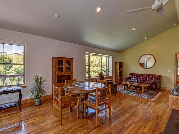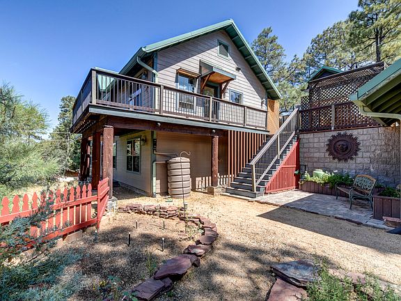 Tucked into the pines of The Mountain Club, just 2 miles from downtown, awaits a true Prescott gem. This warm and inviting custom home was built in 2001, and is the perfect retreat destination for a weekend, a season, or year-round! The main level features a cozy kitchen and great room w/ fireplace, and a master suite w/ private patio. The lower level offers two large bedrooms, living area, bath, and laundry. The property includes a large detached workshop that could easily be converted into a garage, and an approx, 165sf detached building currently used as a music and yoga studio. A large backyard and lovely patio add to the charm of the property. After hiking/biking nearby trails, grab your coffee or cocktail and enjoy beautiful views of Thumb Butte from the deck as you exhale. Ahhhhh.