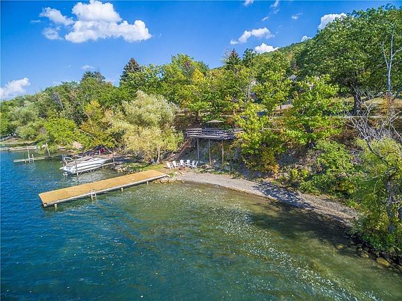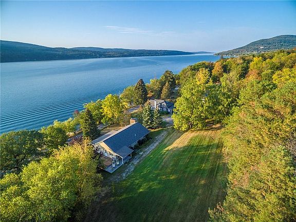 RARE Canandaigua Lake waterfront--amazing 117' & 3 acres! Perfect nature waterfront retreat! Contemporary home lives like a ranch with a walkout lower level. Vaulted ceiling fireplace great room opens to a new white & bright granite kitchen with wraparound deck to take in those scenic lake views! Master suite, 2 bedrooms/bath/laundry on 1st floor. Lower level in-law/teen suite: fireplace family room with kitchen, bedroom & bath! Wake up to views of Canandaigua Lake, the tranquil waters lapping peacefully at the shore! Shale beach, 12' x 44' permanent dock, & 14' x 24' waterfront deck--enjoy the afternoon sun & sunsets! Option to buy 1105 South Lake Road & Lot B building lot for the ULTIMATE CANANDAIGUA LAKE COMPOUND--400' frontage total! More options available...buy one or buy them all!