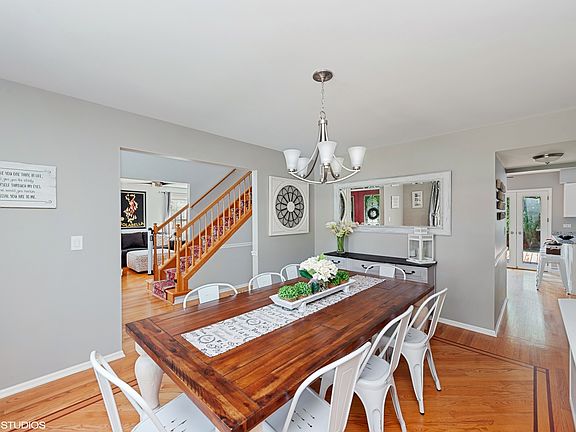 Tucked away on a quiet, tree-lined street, this remodeled 4BR/3.5BA home offers modern finishes, and an abundance of indoor-outdoor space. An open concept kitchen, featuring desirable white cabinets, 4-seater breakfast bar, granite countertops, stainless steel appliances and a built-in wine rack, overlooks the family room. With lofty, vaulted ceilings and skylights, the family room is truly the heart of the home. Host family gatherings in the formal dining room, spacious enough to accommodate an 8-person dining table with plenty of room to spare. A private backyard offers ample space for kids and pets to run free, and features a deck and tool shed. The master bedroom showcases thoughtful design details: a reclaimed wood accent wall and pendant side lamps; while the ensuite master bathroom features a double vanity, and separate shower and tub. A dedicated theater room is decked out with a dry bar, mini-fridge, projector and screen. Finished multipurpose basement. Good school district.