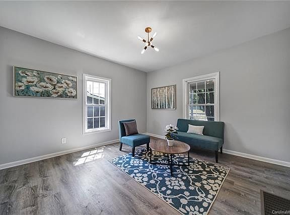 Beautifully updated and spacious 2 bedroom, 1 bathroom, ranch is a must see! Features you'll love are the stunning MOSAIC tile back splash in the kitchen, high end lighting fixtures, new kitchen cabinets and hardware, gorgeous GRANITE counter tops, STAINLESS STEEL appliances, new bathroom vanities and fixtures, spacious bedrooms with lots of natural light, new tub/shower combo in the bathroom, new granite topped kitchen island with sink and dishwasher, and an open floor plan. Great curb appeal, new flooring and paint throughout, and new paint and stain on the rocking chair front porch and new landscaping. CONVENIENT location to downtown Rock Hill, and just a short commute to I-77. This is a great value for a 1000+ square foot, move in ready, and fully renovated home with no HOA fees!