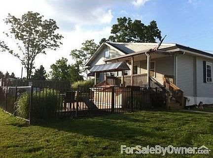 Totally redone one bedroom home on 1.77 acres, with a oversized two car garage 22x30 with full walk up second floor and 100 amp electric. Living room 13x15 with hardwood floors and wood burning stove, large dining room 12x14 with hardwood floors, which opens to the new kitchen 12x13 with granite counter and new cabinets, stainless steel range and dishwasher, and wine cooler, ceramic tile flooring. The Master Bedroom had hardwood flooring and a new bath and a walk in daylight closet. Both new bathrooms with ceramic tile. Half a basement with new drywall and ceramic tile flooring with laundry room. Covered rear deck 8x14, new ceramic tile patio 15x30, with a fish pond. There are two separate fenced in area's in the back yard.