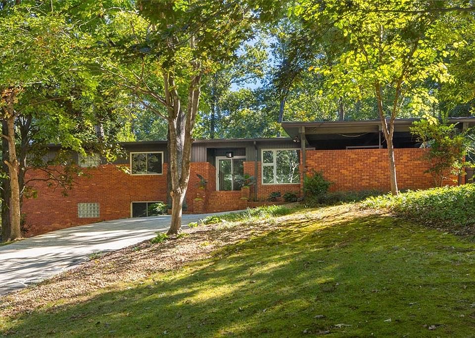 This updated mid-century modern residence tucked into the lush, wooded neighborhood of Vistavia Hills/Mason Mill brings together the perfect blend of classic style and function. While many recent designer updates and renovations have been made, highlights of the mid-century design have been preserved. Large pane windows throughout the home on both the main and lower level allow plentiful natural light. Abundant living spaces complement one another in a sprawling open floor plan. Indoor to outdoor living for maximum entertaining or family gatherings are effortless. All new hardwoods cover the main floor. Two large living rooms provide ample lounging and recreation indoors and flank a bright sun filled oversized screened porch with with skylights and terracotta tiled floors, overlooking an oversized back deck and fenced in backyard beyond. Fitting with the mid-century flow, transitions such as full wall three paned sliding glass doors make the rooms feel separate, yet together for complete feng shui. The organic flow unfolds to the cheerful retro-style kitchen, and central dining room. Down the hallway from the double door entry foyer, are two nicely sized bedrooms perfect for family and guests, sharing a freshly renovated slate and light gray tiled full bathroom with double vanity and shower/bath. The master bedroom at the end of the hall features two walk-in closets, more large paned windows for loads of natural light, and an en suite bath with updated modern cabinetry, and step-in tile shower. Down the stairs from the main floor, another set of fully finished living spaces and a full bathroom with step-in tile shower, surprises and delights. A polished concrete floor, and textured wall paneling provide the mid-century charm – with enough separate spaces for additional bedrooms, game room or den, office, library – or a full in-law suite. With a private covered entrance from the outside, this lower level provides many possibilities. There is no shortage of storage in this home, with many deep closets, a dedicated storage room on the lower level, and the stylish vaulted ceiling 2-car carport with separate entrance to the main floor kitchen. Each aspect of this retreat-like property provides opportunities to relax and enjoy not only the indoor features, but the outdoors as well. The oversized back deck overlooks a fully fenced private yard, with an area for grilling, potter’s shed for storing yard equipment, and a unique garden sculpture. Steps from Thompson Park’s playground, tennis courts, trails and sporting fields, and conveniently located between the revitalized Toco Hills Shopping Center, Emory, the CDC, and Mason Mill Park, this unique home checks the boxes – don’t miss it!