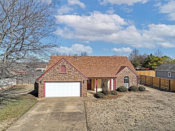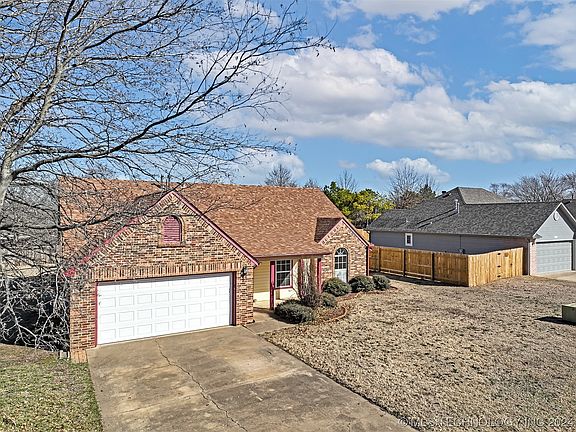 Located in the heart of Skiatook, this 3/2/2 in the Southfield subdivision is minutes to shopping, restaurants and to Skiatook Lake. Roof & gutters replaced in 2020, new hot water tank in 2019! The large vaulted ceiling living room has a fireplace with built-in cabinetry and opens to nook & kitchen. Kitchen has new Stainless Steel stove, microwave and dishwasher. Bedroom wing holds a large master with built in cabinetry and private bath with new lighting & sink fixtures and double walk-in closets - secondary bedrooms have walk-in closets. Large laundry room sits between garage & kitchen and has a huge pantry so putting up the groceries is a breeze! Solid surface flooring throughout the home & fresh paint! The covered patio with deck and hot tub offers relaxation in the fully fenced back yard.