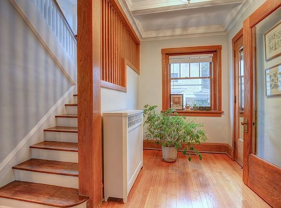 Large front porch overlooking Davidson Park welcomes you to this Prairie style home with Arts & Crafts character throughout. Gorgeous original hardwood floors & woodwork, stunning coffered ceilings in both the great room and dining room, double staircase, stained glass, and vintage radiator covers all add to the charm. Upstairs features all 4 bedrooms, renovated bathroom, and bonus sun room. Unfinished walk-up attic has countless possibilities, and could easily be finished. Master bedroom boasts 2 closets, one that is a walk in - rare for a home built in 1915! Full basement offers additional storage and plenty of work space. Brand new roof in 2016 and AC + duct work added to home in 2014 are just 2 of the many updates done - please ask your Realtor for the full list to see all that these owners have taken care of so all you need to do is move in!