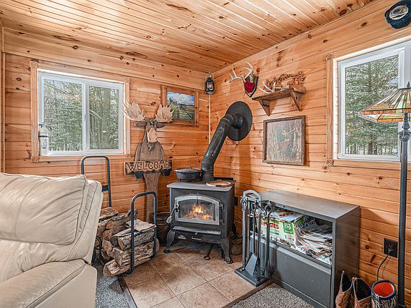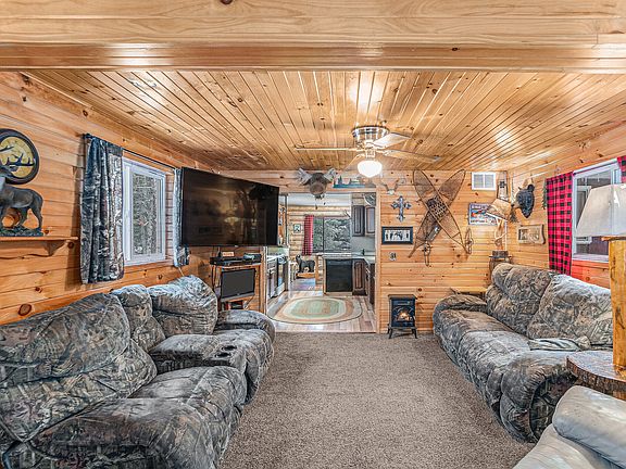 Cabin-living on 3.5 acres blends rustic tranquility with functionality. This 2 bed, 1.5 baths includes a paved drive & metal roof. Features a huge 3-door-garage, shed, outhouse & fenced area. It's a hobby farmers dream! Refreshed kitchen with a gas stove, new sink & dishwasher. Partially finished basement offers unlimited potential for recreation & more; it currently serves as a non-conforming master suite with a half bath (materials to upgrade to a full bath included). Across from Manistee National Forest and 5 minutes from Nichols Lake—perfect for outdoor adventures!