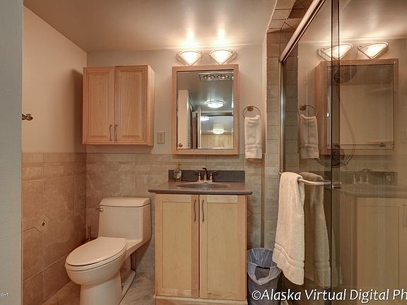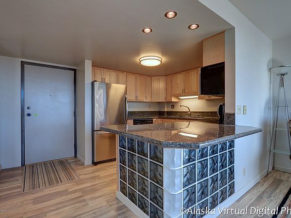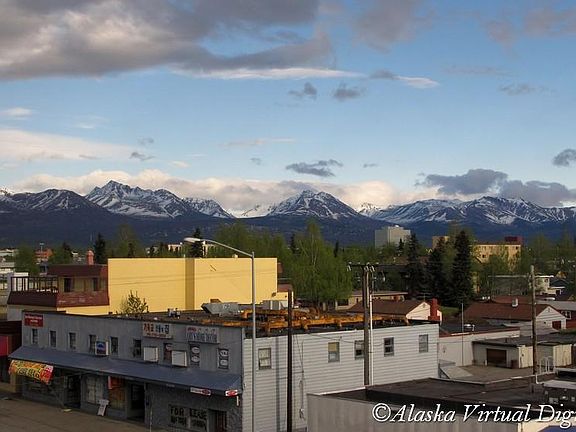 VIEWS VIEWS ENDLESS VIEWS is what you will find from the unobstructed Chugach mountain range. Tastefully update condo with granite counter tops, SSappliances laminate flooring, custom blinds and completely redone bathroom. This is a corner unit and easy access to garbage disposal. In basement there is a secure storage unit. Just steps to walking trails to downtown/ restaurants/shopping.