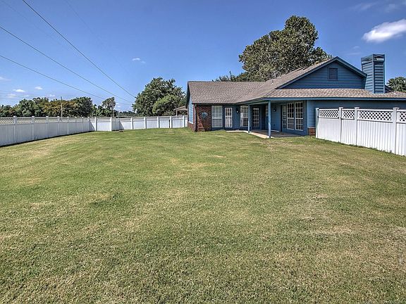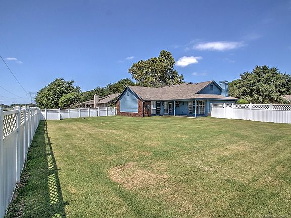 This beautiful home features a large living room, a nice formal dining room, a kitchen nook, a laundry/mud room, a corner lot, and a greenbelt (meaning no backyard neighbors!). The inside has been newly painted throughout, and the large fenced back yard with covered patio is an excellent space for entertaining. Broken Arrow Schools. Tile floors throughout (no carpet). Adjacent to Indian Springs Golf Course, the Golf Course runs through this gorgeous neighborhood. The house backs up to the Indian Springs Sports Complex. Huge master bedroom with French door to covered patio. All 3 bedrooms have large walk-in closets. 2 full bathrooms, each with linen closets, gas fireplace, 2-car garage with garage door opener. Comes with professional weed control service. Central AC and gas furnace. Renter is responsible for all utilities