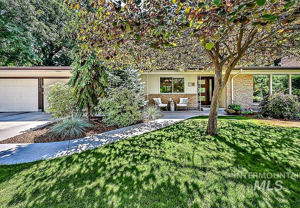 A timeless single-level Mid Century home nestled into the beloved low-lying Highlands! This sought-after neighborhood is known for its well-preserved original homes, idyllic tree-lined streets, and miles and miles of foothill trails nearby. The homesite feels private, yet has an intriguing allure. Grand scale rooms, crisp white walls, and expansive hardwood floors combine to create a fresh backdrop for sophisticated, comfortable living. The bright and inviting living room is lined with a trio of floor-to-ceiling windows, while a wood-burning fireplace wrapped in marble tile is flanked by MCM built-in cabinetry making for a cozy yet functional focal point. Wide entryways define each of the living quarters while creating a seamless flow from room to room. The spacious chef's kitchen is equipped with rich ceiling height cabinetry, granite countertops, brand-new stainless steel appliances, and a uniform built-in workstation.