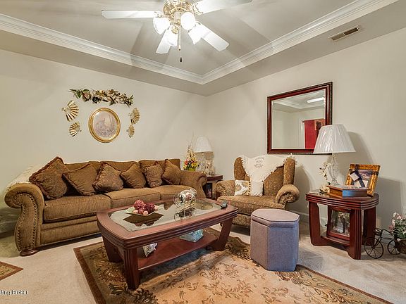 Lovely patio home on the Jefferson/Bullitt Co line. Close to Preston Hwy and shopping access for convenience. This patio home has a lot to offer. 2 bedrooms and 2 full baths, a living room and large family room with a spacious eat-in kitchen. The kitchen boasts oak cabinets, a small island, and appliances that remain. You will also like the convenience of a laundry room off the kitchen. The master bedroom has a walk in closet and full bath. There are custom touches that include tray ceilings in the living room & master bedroom. The home is wired for a security system. There is pull down attic access for additional storage. The wide hallways and doorways make this home accessible. You'll love the patio outside with privacy fence. If you are looking for an affordable home, this could be it! Call today!