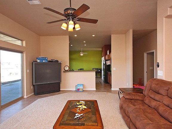 Beautiful "Green" Santa Fe Styling w/Energy Star rating - Features 4 bed/2 bath, Open/Split floor plan w/Great room effect. Has Maple Cabinetry, 2 tone paint, Granite Ctr tops, Tiled shower surrounds, 20" Travertine stone in traffic/wet areas, Stain Master carpet in bedrooms. Large kitchen island & pantry & wood faux blinds throughout, upgraded insulation in attic & walls. Massive covered patio with tongue/groove ceiling, Large 3 car attached garage, fenced back yard, all on 1 acre & 10 GPM Well