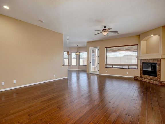 GREAT NEW PRICE, EXTRA SHARP & UPGRADED! Newer (built in 2014) 2094 sf, Great Room plan with golf cart garage! Incredible extensive hardwood floors in great room, kitchen, breakfast room & office, Quartz countertops in large u-shaped kitchen, plus an electric fireplace in the oversized great room! Immaculate inside and out! Backyard completely fenced and has synthetic grass area. One block to new fitness center plus access to the larger overall community center appoximately 1/2 mile north. No need to wait for a new-build - this home is better than new!