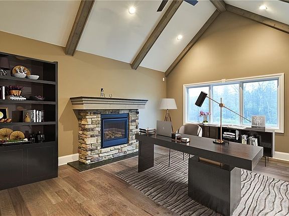 Expansive Custom built Colonial on a Gorgeous Wooded 2.56 Acre Lot! 4 bedrooms, 3.5 baths. 4650 sq ft w/open floor plan! Pella Pro case windows! Expansive driveway with stamped concrete leads to stamped concrete front porch. Vaulted and ceramic tile entryway, 8-foot Dual locking Provia entry door! Doorbell with app and camera! Welcoming 2 story foyer. Kitchen features 10 x 5 granite island w/built-in prep sink, gas stove, pot filler and custom ventilated hood system. Kitchen also provides GE fast cooker oven, dishwasher, floating shelves, subway tile, eat-in area and spacious walk-in pantry with shelving! Dual Action Pella sliding glass door leads to Stamped Patio with wood vaulted beamed ceiling and wood burning fireplace w/ gas starter! Parlor boasts a fireplace and beamed vaulted ceiling! Spacious master wing offers engineered hardwood floor, custom woodwork trim and panoramic views! Master bath provides ceramic tile, double shower, luxury soaking tub and dual quartz counters. 3 bedrooms on the 2nd floor ! A Jack and Jill with dual quartz sinks, ceramic and spacious closets! An En Suite with full bath! Huge bonus room plumbed for bath! 2nd floor laundry! 1500 sq ft walk-out basement with triple glass slider, plumbed for bath and bar/sink! 14 course with 9-foot ceilings and grinding station. Two 50 gallon AO Smith Commercial Grade Hot Water Tanks with circulating system for constant Hot Water! 2 Armstrong Pro Series Furnaces w/ Aprilaire. Constant Pressure Well System.