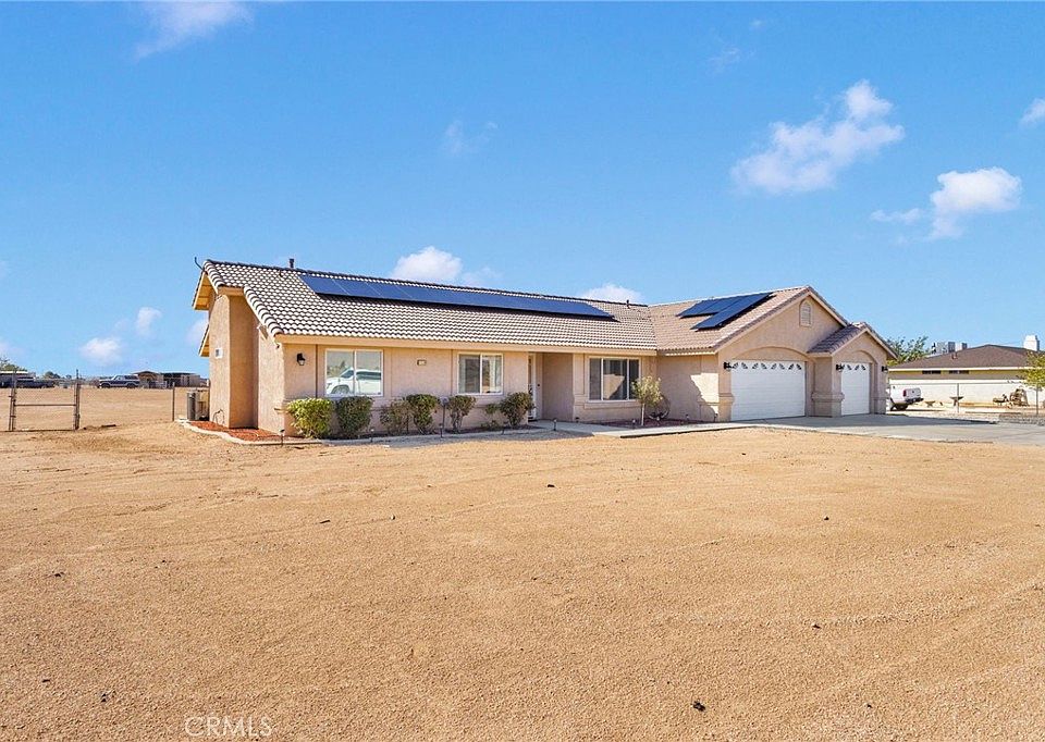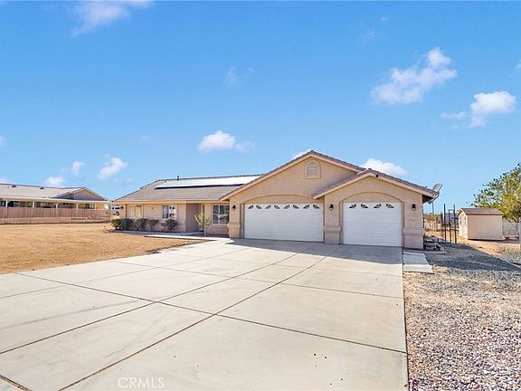 The Apple Valley home that fits all your family's needs and wants! This home comes with PAID FOR SOLAR, saving you money monthly with 49 panels and not just one, but two back up batteries! A large kitchen with newer appliances openly flows into your kitchen nook and family room that offers a wood burning stove to keep you warm on chilly desert nights! The primary suite is located off of the kitchen with a large walk in closet adjoining a bathroom finished with dual vanities and a soaking tub with a private shower! The additional three bedrooms are located on the other side of the home with a full bathroom tucked in between! The property offers a fully fenced one acre lot with a covered patio perfect for entertaining and expansion! Looking for room to work or run your home business? Additional space for guests? You'll love the fully finished secondary structure equipped with recessed lighting, flooring and a mini split! A custom built chicken coop is ready to help kickstart your dream of a family home stead alongside a fully finished storage unit to allow for ample storage! Ready to tour this home? Scroll down for contact information and call the listing agent, Emily Lamping directly!