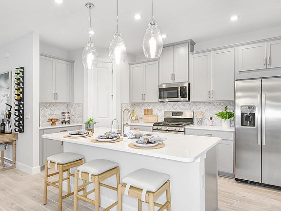 REPRESENTATIVE PHOTOS ADDED. May Completion! With 3 bedrooms, a large lanai and open-concept living spaces, the Matera in Esplanade at Artisan Lakes fits your year-round active lifestyle. The main living area, open and airy, is the indoor hub of this spacious home. The expansive area includes an open kitchen, café dining and family room, with views out to a roomy lanai. The owner's bath features dual sinks, a large shower and private commode. Direct access to the laundry room is provided from a large walk-in closet. 2 additional bedrooms make excellent guest rooms. Both are located convenient to a full bath. Enjoy a pond view and corner lot! Design upgrades include Tahoe slate cabinets, quartz countertops with subway tile backsplash in kitchen. Structural options added include: extended lanai, 8' interior doors, door at laundry, outdoor kitchen rough-in, floor outlet.