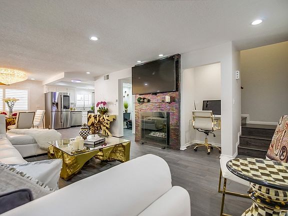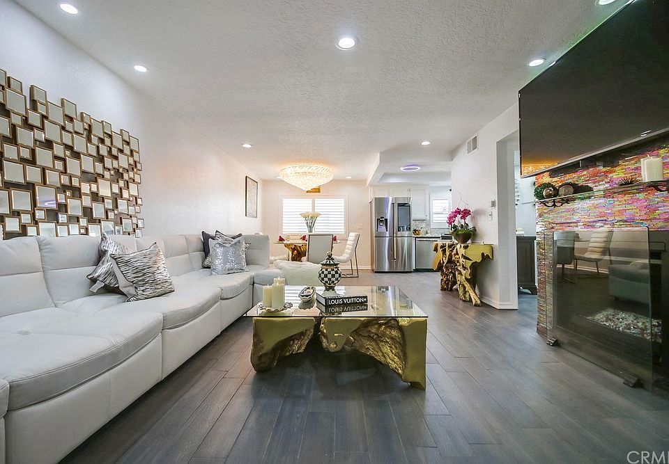 Life is Gucci in this stunning and lavish tri-level condo in the heart of Los Alamitos. This residence is beautifully appointed with luxury finishes and tasteful touches. 2 Master Suites and a downstairs powder room are just the beginning. Step into The large open concept living space that will invite you in with its light and modern feel. The beaming beautiful ceramic floors will welcome you. The iridescent glass tile fire place will keep you warm during cozy nights and the AC will make sure you never break a sweat. The modern and updated kitchen boasts new white, granite counters, stainless-steel, Samsung appliances, and silver-tile backsplash. Take in some morning Enjoy a morning tea in your private patio and take in a breath of fresh air with all the beautiful trees. Sit and soak in your spa tub and take an extra moment for yourself in your private vanity. Plenty of privacy as you drive into your attached bottom level 2 car garage with laundry hook ups. All of this in Blue Ribbon, award-winning Los Alamitos School district. This beauty won't last. This home is a work of art with modern sensibilities. Beautiful finishes and the elegant chandelier create a spa-like atmosphere. Home-network Bluetooth means your music will spill through the house. Just push play. Freshly painted and renovated, it's a clean slate for your tastes. Start planning your next party. Everything is ready. All that is missing is you.