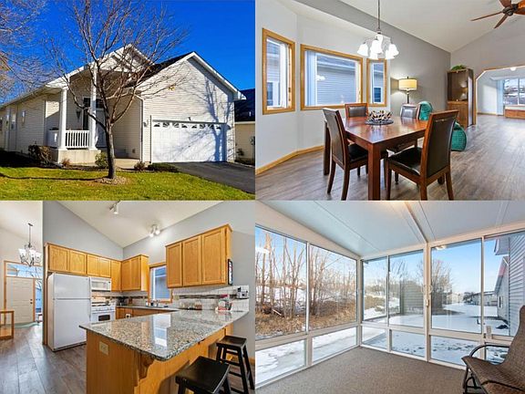 One level living detached townhome w/finished basement Well maintained and move in ready. Large foyer, open floor plan, high ceilings throughout with vaulted main floor. 2 bedrooms and 2 bathrooms w/ laundry on main level, 2 bedrooms, 1 bathroom and a recreation room downstairs for a total of 2,100 total square feet. 2 car heated attached garage with high ceiling. Large sunroom attached to 3 season porch. Minutes to downtown Elk River & Light Rail.