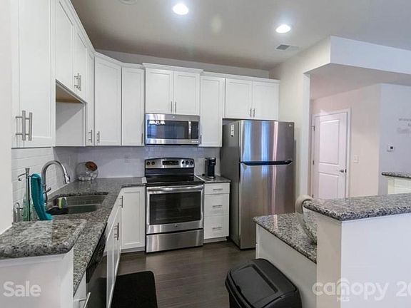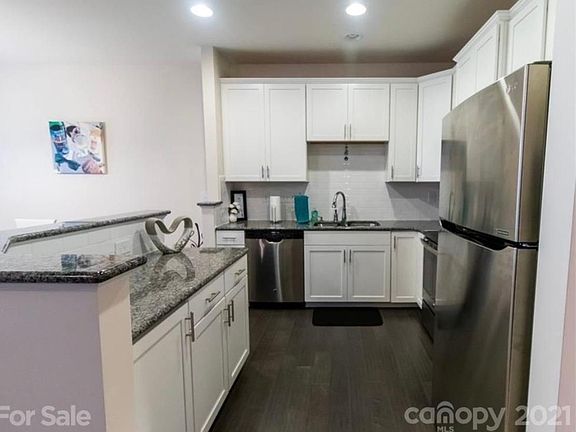 Welcome to this immaculate Northeast facing 3 bed/2.5 bath townhome in the highly sought-after Edison Square neighborhood - conveniently located near several shops, restaurants, daycare & all highways. This home has an open floor plan with wide plank wood floors in entry, 1/2 bath, kitchen & dining, white kitchen cabinets, stainless steel appliances, granite countertops, and large walk-in pantry/closet for extra storage. Upstairs, you'll find a spacious primary suite with 2 closets an updated en suite bath with large soaking tub/shower combo, 2 more large bedrooms 1 of which has a walk-in closet, & a laundry closet. Relax on the back patio with a privacy fence on both sides. Other upgrades include epoxy garage flooring, storm doors in both front & back, granite counters in the bathrooms, covered front porch, & a tankless water heater.