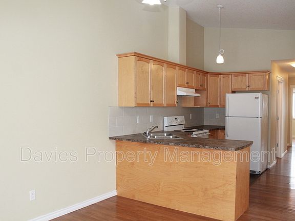 This main floor recently renovated and improved unit is bright, spacious and well layout. As you enter into the main unit you are welcomed by the open concept high vaulted ceiling living room that leads to a kitchen. Kitchen is complete with all matching appliances, lots of cabinet space and counter top. Primary bedroom is spacious and bright with a walk in closet and an ensuite half bath. There are 2 more bedrooms in the unit. A full bath completes the unit. Access to single detached garage available. Flat monthly fixed fee for utilities of $400 per month