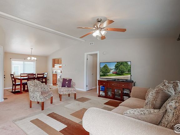 Gorgeous move in ready home featuring newly in & out paint surrounded by a well maintained, lush yard w/lots of trees & front yard sprinkler system ( irrigation water included in land lease) The studio/office could easily be a 4th bedroom. Newer trim, kitchen floor, dbl pane windows & blinds. Split design adds privacy to Master bedroom. 2yr old Roof, sliding & front doors! Skylights, detached 2 car garage. This community is intermingled w/green space, walking trails & amenities including a pool, parks, fitness center, club house, and catch and release fishing pond. Don't let this jewel go! No association fee, however there is a monthly lot lease of $758. Water, sewer, and trash paid to the park.