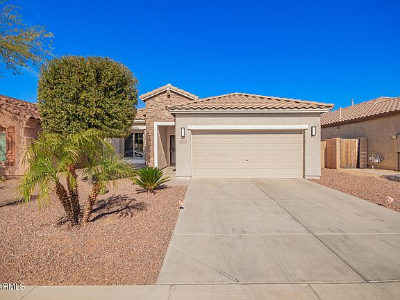 The search is over! This delightful 3-bedroom, 2-bath residence features a 3-car tandem garage, a charming desert landscape, and a stunning stone façade. The captivating living room welcomes you with high ceilings, a soothing palette, blinds, stylish wood-look flooring, and a fireplace for cozy evenings. Culinary adventures await in the eat-in kitchen, equipped with quartz counters, a decorative tile backsplash, abundant wood cabinetry with crown moulding, a pantry, SS appliances, and a peninsula with a breakfast bar. The primary bedroom showcases soft carpeting, an ensuite with double vessel sinks, and a walk-in closet. The enchanting backyard boasts a covered patio, travertine pavers, a lovely gazebo, pristine artificial turf, and a sparkling pool for refreshing dips. Make it yours now! This beauty is move in ready. Don't snooze on the well insulated, climate controlled (AC and heated) 3 car tandem garage! Take a look at the list of upgrades done in the MLS document section!