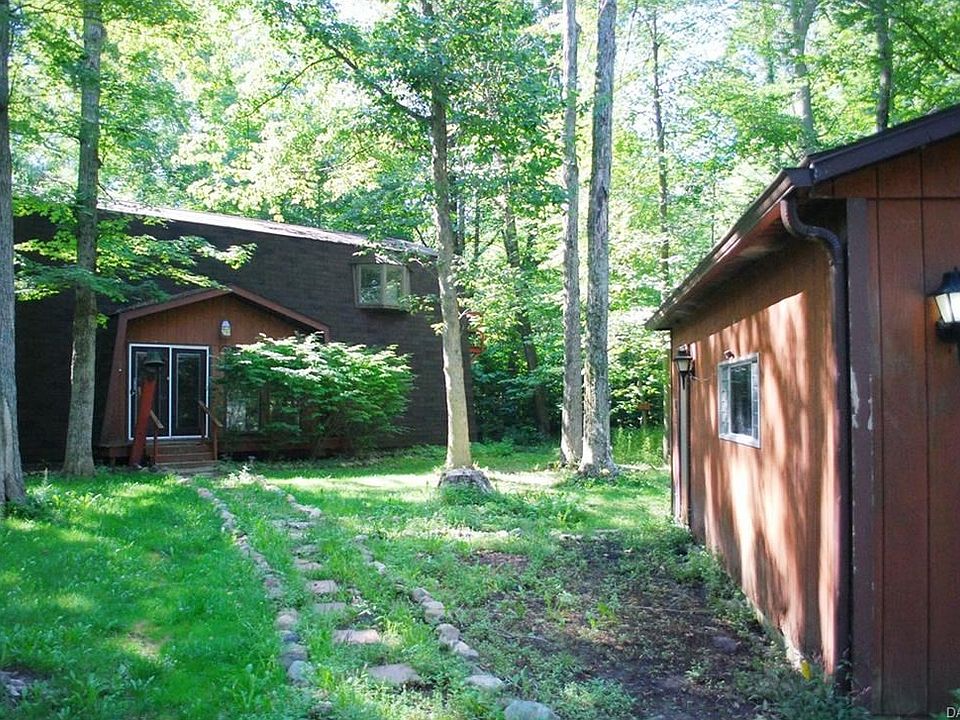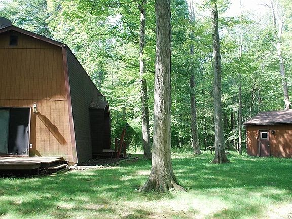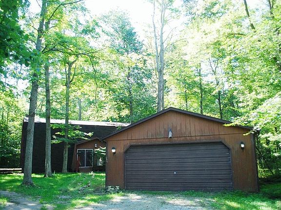 Enjoy the serenity and peace of the country in this 2194 sq ft chalet on 3.7 acres with a creek and separate 22x24 detached garage and add'l 30x24 prefab steel bldg. The house offers 3 bdrms, 2 baths. The great room boats a vaulted ceiling and fireplace insert for the upcoming fall and winter mths. You'll appreciate the 2nd floor large master suite that offers a large bathroom and small balcony to enjoy the serene mornings with a cup of coffee . You an also enjoy the outdoors on 3 additional wood decks off of the great room, dining room and large laundy. Come put your finishing touches and updates on this remarkable property. room sizes are estimated.