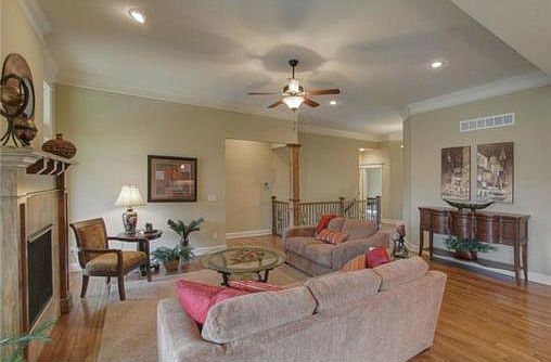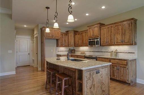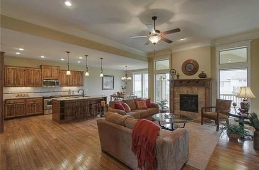 Open plan loaded with upgrades! Covered deck & patio granite counter tops large walk-in pantry built-in wet bar hardwood & tile floors stainless appliances metal spindles walk-in tile shower 11 ft. vaulted ceilings high efficientfurnace built-in humidifier. Downstairs bedrooms & closets are huge. Two community pools & play area.
