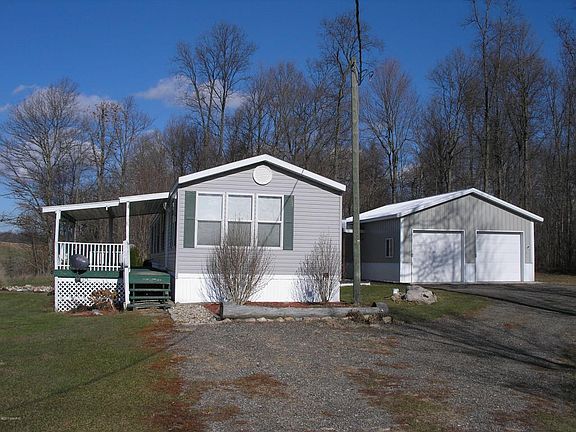 Nicely updated & well maintained 3 Bedroom 2 full bath single wide mobile home on 2.4 acres in the country. Open concept Living room & kitchen with eating area, granite counter tops & engineered wood flooring. Partially covered deck overlooking the nicely landscaped yard and decorative fish pond. Oversized 2 car detached garage/pole barn w/cement floor and electric.
