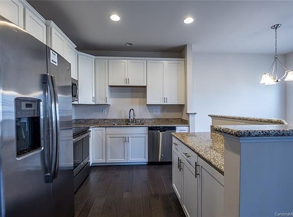 Exquisite three bedroom, 2.5 bath townhouse located in the heart of Edison Square! Beautiful kitchen with 42" white cabinets, granite countertops, stainless steel appliances and kitchen island. Hardwood floors throughout the main level. Seller just added hardwoods on stairs and most of the second floor. Third bedroom on second floor has hardwoods which is perfect for an office or bonus room! Master bedroom boasts a tray ceiling with crown molding, ceiling fan, and his and hers closets while the master bath features a tile shower. One car attached garage and back yard already staked for a privacy fence! Front and rear yard maintenance included in HOA fees! Cabarrus County taxes and schools!