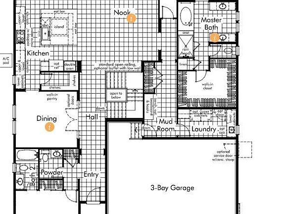 2-bedroom, 2.5 bathrooms, ranch plan located on a walkout homesite. Spacious great room with a cosmo fireplace and floating shelves. Dining room with access to the kitchen. Well-designed kitchen with island, walk-in pantry and a 14' x 10' 4" kitchen nook. Covered deck. Large laundry and mud room off the 3-bay garage. Design features include: wide plank hickory coal wood style flooring, tile floors in the bath and laundry rooms, slab granite kitchen counters with a backsplash, engineered stone counters in the bathrooms, and maple kona cabinetry.