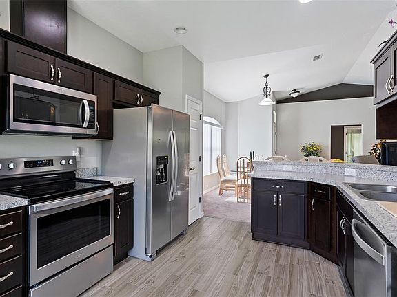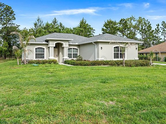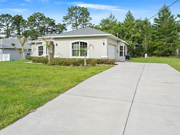 2020 BUILT 3 BEDROOM home located in the ROYAL HIGHLANDS on a paved road WITH NO HAO. This quality home was built by Pastore Custom Homes and is situated on a large half acre lot in Weeki Wachee. This home has tons of curb appeal plus a a side entry garage. When you enter through the front door, you will immediately notice the high ceilings and open floor plan. The family room is very spacious and has sliding glass doors that open to a screen-enclosed lanai with brick paver decking. The kitchen has high ceilings, a breakfast bar PLUS a dinette area with adorable bay window and a formal dining room. The master bedroom suite includes a large walk-in closet and private bathroom. Both guest bedrooms are spacious and share a guest bathroom. With just under a half-acre of land, the possibilities are endless. All of this plus a location close to Hernando Beach, the Weeki Wachee River, Pine Island and Rogers Park.
