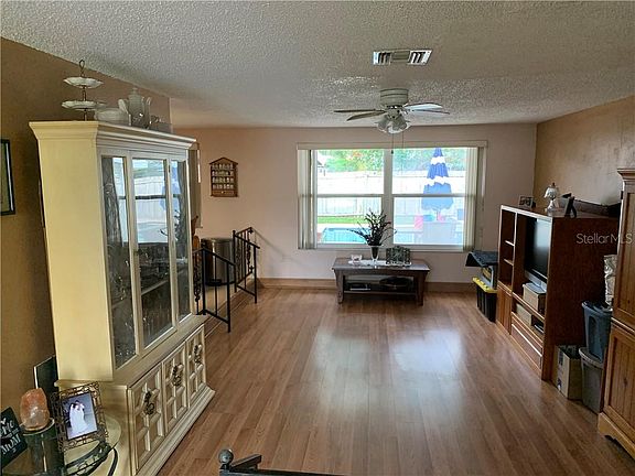 Spacious pool home in a family friendly quiet neighborhood close to shopping with underground utilities, street lights and sidewalks, also private walkway to Schrader Elementary and Bayonet Point Middle schools. 1808 square foot of heated and cooled living space with a split plan layout. Large master bedroom with sliders to pool, private bath and walk in cedar closet. Two more bedrooms on opposite side of house with an additional re-modeled bath and cedar lined closets. Kitchen and pantry with dining room separate the living room and family room perfect location for entertaining and family get togethers. Wood burning stone fireplace in the large family room with plenty of room for furniture and big screen tv. Sliders to screened lanai opens to beautiful private fenced in yard with large inground pool. House is completely hard wired for ethernet, floors throughout are beautiful low maintenance tile and wood laminate, also all lighting has been upgraded to led. China Hutch in living room stays with the house. Schedule your walkthrough today this home is a must see.