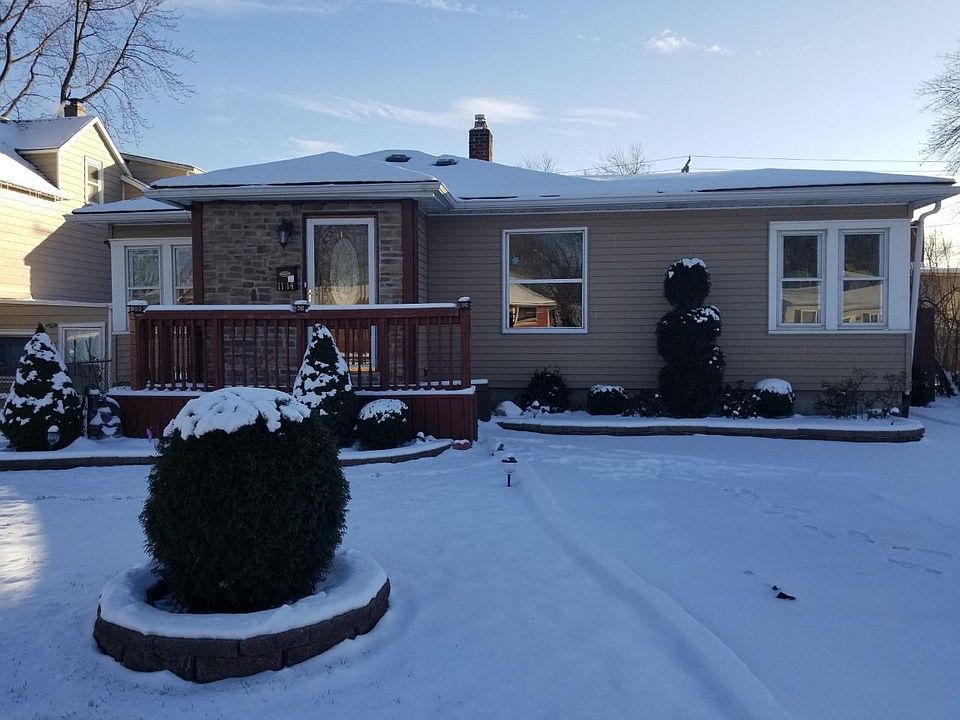 Looking for a distinctive floor plan? The Living room & Dining room combination flow effortlessly to the Kitchen and outside Patio. The kitchen has nice travertine tile flooring and a patio door. The master bedroom is very spacious and has a private bath. The enclosed porch has patio doors that lead to the covered patio deck. Down to the basement and you will find a den/office and a work shop room. The garage is very spacious. Big enough for 2.5 cars and a workshop combined. The house is maintenance free. The Architectural roof is only 5 yrs old. The High Efficiency Furnace is 1yr old. The vinyl siding and vinyl windows are newer. The landscaping and side driveway are recent.