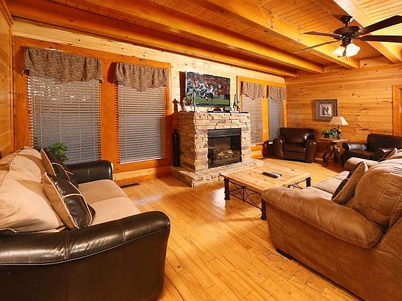Beautiful, luxury cabin boasts 6 BR, 6 1/2 baths and accommodates 22 people. It is professionally decorated, has beautiful hardwood floors, a fully equipped kitchen, a game room with pool table, air hockey table, Wii gaming system and a stand up arcade. All six bedrooms have king size bed and a private deck. The four master suites have a bedside jacuzzi. There is a home theater room with two tiers of luxury leather seats and a large projector screen. All of this and also located just minutes away from all the tourist attractions, shopping and dining in Pigeon Forge,Gatlinburg, and Sevierville. A MUST SEE!!! Cabin Name: Smoky Mountain Cinema. Current owner has already paid for 2020 resort pool access.