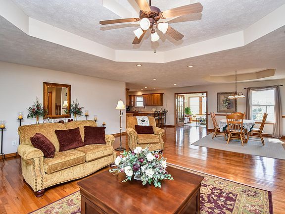 RARE OPPORTUNITY to own your own piece of ''Beautiful Ozark Mountain Country'' nestled in the heart of the Ozarks! The scenic views will take your breath away as you step in the door of this pristine home.Boasting over 4000 square feet of living space and 5 car garage, this house is a dream come true! This 3 bedroom, 3 bath home with a large 25 x 31 Living/Dining area and enclosed sunroom adjacent to it sets a warm tone with the natural light and gorgeous hardwood floors. There is a mud room/utility room stepping in from the 3 car garage on the main level. The upstairs also is home to a full kitchen, 2 bedrooms and 2 full baths. In addition to the enclosed sunroom, there is also an outdoor covered deck to enjoy the views outdoors. Head downstairs to a fully finished basement with a large