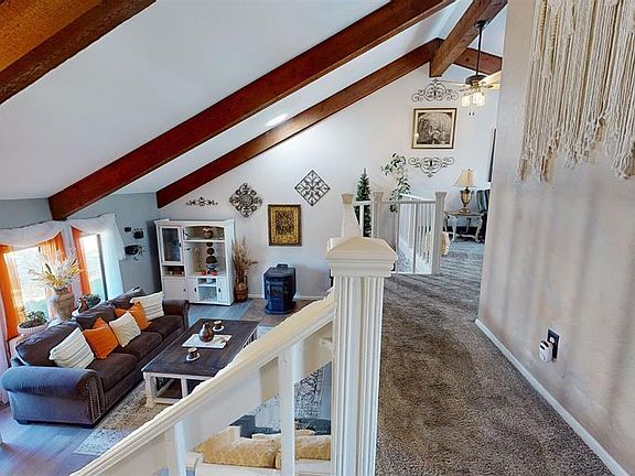 This beautiful 3 bedroom, 2 bath, split level home has been cared for and maintained. The home has a great floor plan. The kitchen, dining, formal living area and workshop are on the main level. There is a pellet stove in the living area. The kitchen has a reverse osmosis unit for clean, clear water. with access to the dining room and the workshop. A storage shed is attached to the workshop. There is an upper level. It has another living area from which you have access to deck for entertaining or just sitting and enjoying the beautiful views of the well landscaped yard, the pond, valley and mountains in the distance . There is also a large bedroom with a loft and a full bathroom on the upper level. Stepping back down to the main level, and then stepping down to the lower level. This level has 2 large bedrooms with ample closet space, a full bath, and laundry room. The property is in close proximity to the public golf course, parks, hospital, and recreation center.