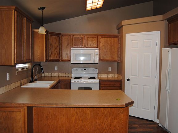 Better than new clean, cute home on a quiet residential street with rolled curb in booming South Twin Falls. Well manicured home and property has covered entry/front patio. Large rear yard. Interior is brand new paint and flooring with some tile flooring and engineered hard wood in entry, dining, & kitchen. All appliances included. Great open feeling living space with vault ceilings and planter shelving. Built-in shelving between dining and living. Large master suite with separate bath and walk-in closet.