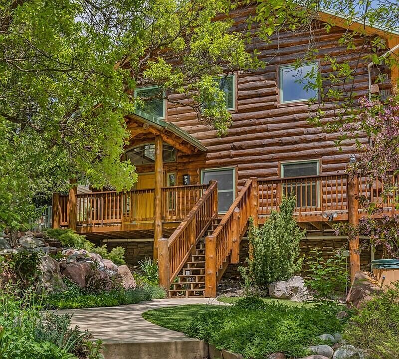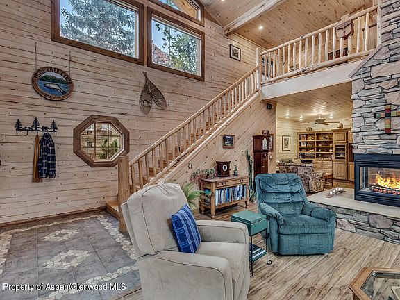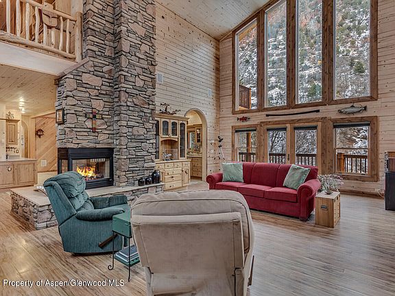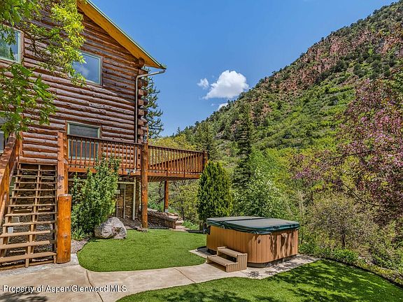 Serenity awaits in this beautiful mountain home on Canyon Creek. This custom-built log house sits on just over 51 acres protected by Aspen Valley Land Trust, adjacent to BLM. This unique 3-bedroom boasts 2 primary ensuite bedrooms, office, gym, solarium, radiant heated floors, and built-ins throughout. The unfinished walk-out basement is ready for completion with radiant heated floors and plumbing in place. The large oversized Trex decks were rebuilt in 2021, great for entertaining or just relaxing and viewing the wildlife. In addition, this property has a guest cabin, firewood shelter, oversized carport, solar panels, sprinkler system, storage shed and yurt. Conveniently located only 1 mile from I-70 and all the amenities of Glenwood Springs.