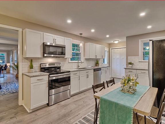 - RoomKitchenFeatures: Granite Counters, Recessed Lighting, Eat-in Kitchen, Floors-Laminate, Backsplash-Tiled, Cabinets-Painted