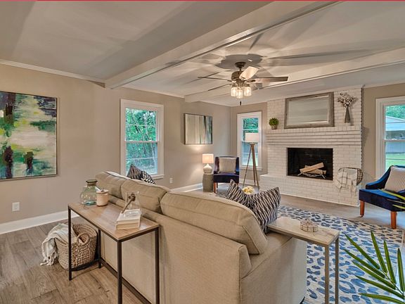 RENOVATED from top to bottom! NEW roof & custom updates throughout! This all brick rancher is the place to call home! The charming front porch sets the stage for what's to come! Enter into an open concept plan with low maintenance hardwood laminate flooring throughout main living areas & plush NEW carpet in the bedrooms! Spacious great room showcases custom ceiling beams, a custom, painted brick fireplace & NEW windows for an abundance of natural light! Chef's eat-in kitchen boasts NEW granite counters, NEW white cabinetry, NEW, custom tile back splash & NEW, stainless steel appliances! Large dining room features custom molding & French door leading to back patio for true indoor/outdoor entertaining! Master suite features private, backyard views with a NEW bathroom with custom vanity & tiled shower! Two guest bedrooms (one with a built-in desk!) share a NEW hall bath with custom, barn door vanity & tiled bathtub/shower surround! The large office is perfect for working in style or a separate formal living room! Out back you'll find a large backyard with patio, built-in brick grill & detached workshop for all your tools & toys! This one won't last long so plan your tour today!