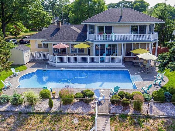 Stunning custom home on the Point Pleasant Canal featuring a private backyard oasis. This home boasts an updated kitchen with granite countertops, living room with fireplace and a wall of windows highlighting the spectacular water views. First floor includes two bedrooms, and 1.5 bathrooms. Double sliders lead you to a 10x36 ft Trex balcony overlooking the large inground pool. Second floor has two bedrooms, a full bath and a family room with wet bar and wood burning fireplace. Double sliders lead to another balcony to enjoy the spectacular views. The full finished basement with wet bar is the perfect for entertaining! This home is NOT in a flood zone! NO flood insurance necessary!