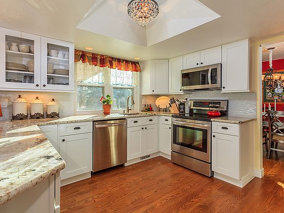 Spectacular two story in The Highlands! This gorgeous home is filled with high-quality upgrades. Exquisitely remodeled, the kitchen showcases newly refinished hardwood floors, custom cabinets, slab granite countertops, LG stainless steel appliances, glass mosaic backsplash, tray ceiling with stunning lighting, a breakfast bar and large pantry. Adjoining the kitchen is the spacious casual dining area and the comfortable family room with classic wood burning fireplace and custom built-ins and the TV is included! Access the deck and backyard from the French doors. The dining and living rooms are equally impressive with features that include a large bay window, chair rail molding and new hardwood floors. Well-designed floorplan with main floor office. Upstairs offers three generous bedrooms, two baths and convenient laundry, washer and dryer remain. All bathrooms have recently been remodeled, including the breathtaking five-piece master bath that boasts a soaking tub, heated tile floors, granite countertops, and a shower with three showerheads. The partially finished basement encompasses a generous rec room with flat screen, fourth bedroom and bath, storage and second laundry room. Washer, dryer and freezer stay! Also enjoy newer triple pane windows, refinished hardwood floors, custom designer lighting throughout, newer carpet, and new air conditioner and furnace. Surrounded by plentiful mature trees and appointed with an expansive deck, this backyard is a true outdoor oasis. Amazing location with close proximity to The Streets at SouthGlenn, Puma Park, Southglenn Country Club and top-notch Littleton Schools. Hurry! This exceptional home is detailed in comfort and will not last long!